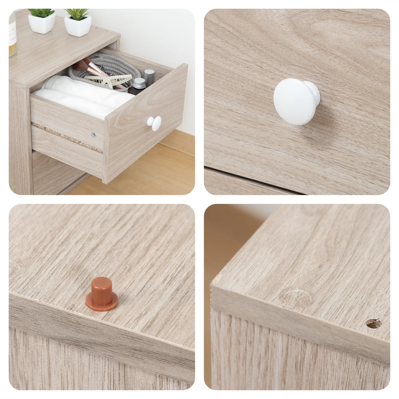 引き出しの中も化粧仕上げを施しているため、タオルや靴下など、衣類の収納も可能です。