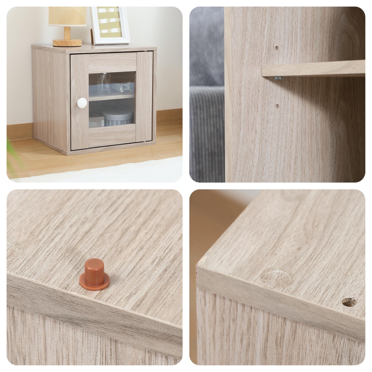 クリアな扉部分から、ちらりと中身をのぞかせるおしゃれ収納。ホコリからも守ってくれます。