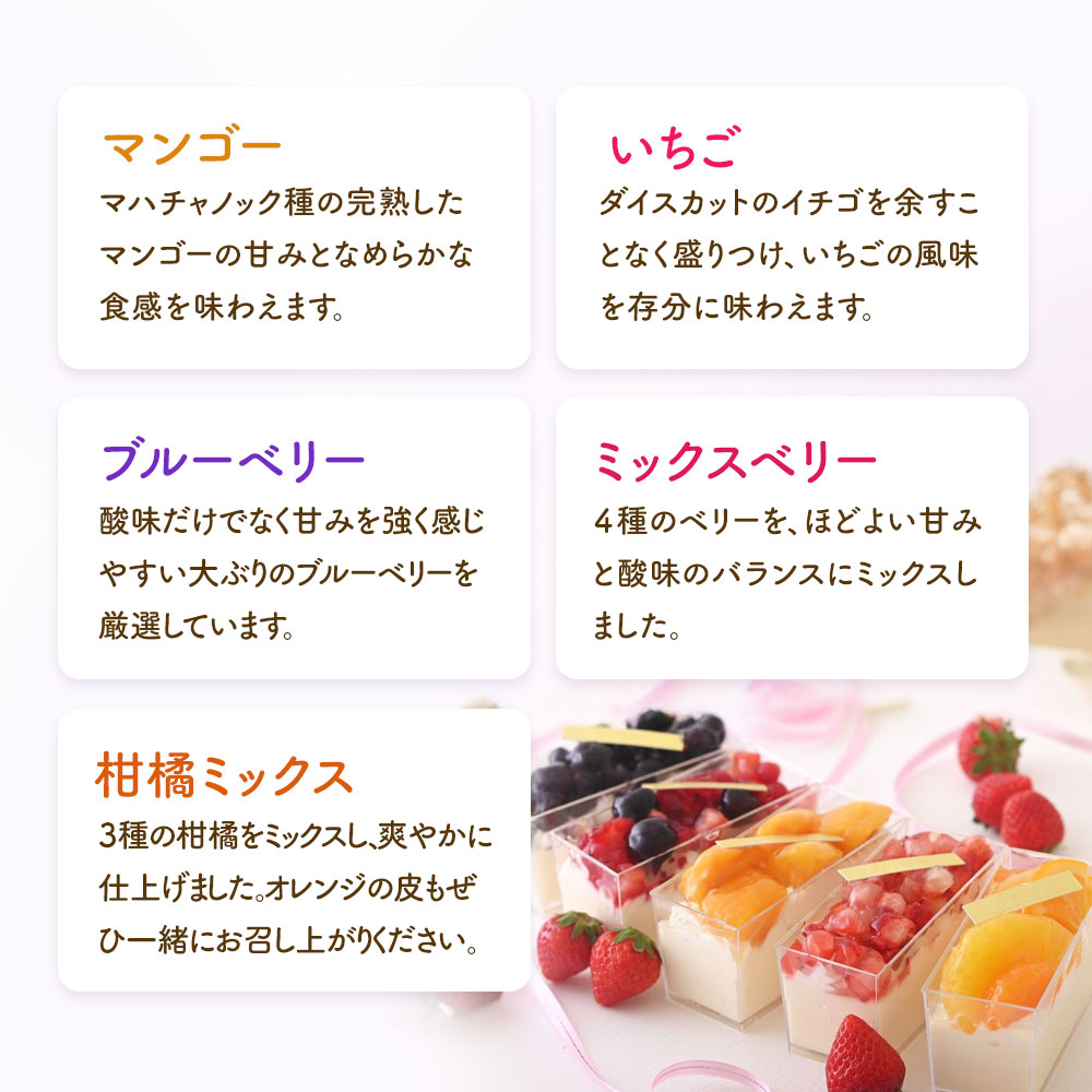 商品内容:5個(マンゴー、いちご、ブルーベリー、ミックスベリー、柑橘ミックス)