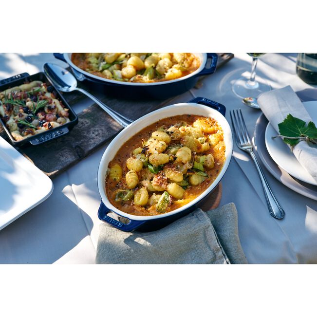 オーブンやレンジ、冷凍、冷蔵に使えるストウブの鋳物製品とマッチするセラミックウェア。